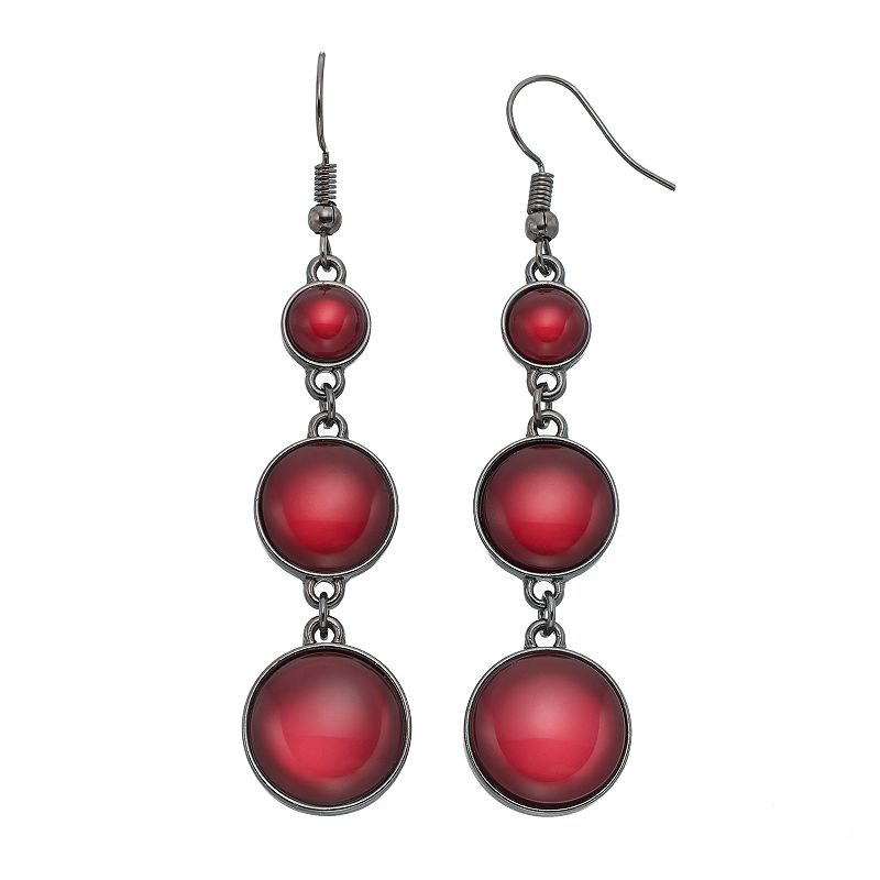 Red Round Cabochon Nickel Free Linear Drop Earrings, Women’s, Dark Red
